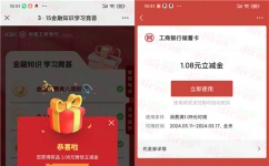 小编提示:进去答完所有题目可以抽奖,中到的微信立减金全国工行卡都可以用,非必中