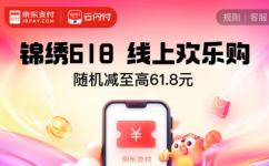 即日起至2024年6月18日每日10点开始,在京东商城APP等平台购买实物类部分商品(特例商品除外)及话费充值,使用云闪付完成在线支付,即可享受单笔订单商品应付金额随机减至61.8元优惠。