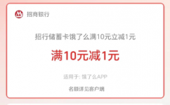 1.即日起至2024年6月30日,用户在饿了么App选择商品进行消费,提交订单结算时直接选择“云闪付App”标识,且使用指定以62开头招商银行储蓄卡的银联单标卡进行支付,则订单满10元可享立减1元优惠。