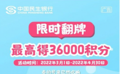 【活动内容】: 1.首次完成风险评估(含网点风评和线上风评)即可领取积分权益; 2.首次添加中国民生银行客户经理的企业微信且签约微信银行账户T+1日11点以后即可领取积分权益; 3.使用手机银行成功缴纳水/电/燃气费T+1日11点以后即可领取积分权益,每月可享一次; 4.凡活动期间完成相应任务的客户,可获赠借记卡积分,进入积分商城限量兑换京东、美团等各种心水好物;具体礼品以积分商城商品为准,部分礼品数量有限、先到先得; 5.直销银行Ⅱ、Ⅲ类电子账户暂不参与本次活动。