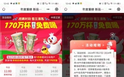 参加蜜雪冰城举办的观赛时刻雪王请客170万杯新品免费喝活动,通过打开微信进去小程序活动里,每天11点-20点每个整点可以参加,每个整点填写口令抢1万份奶茶免单,每天11点开始,每个整点抢1万份免单,每天送10万份免单,共计送170万份免单。